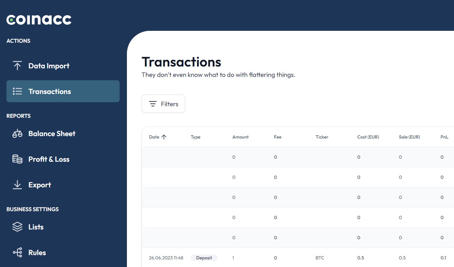 Erkunden Sie die Möglichkeiten: Mit Ihrem erfolgreich erstellten und eingerichteten Konto können Sie nun die verschiedenen Funktionen und Möglichkeiten von coinacc erkunden. Importieren Sie Ihre Kryptotransaktionsdaten, verfolgen Sie Ihr Portfolio, generieren Sie Berichte und nutzen Sie die verfügbaren Tools, um Ihre Krypto-Buchhaltung effizient zu verwalten.